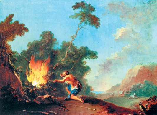 Мы не знаем, когда конкретно произошло, может быть, самое великое событие на миллионолетнем пути превращения древнего нашего предка в современного человека – то, что люди овладели огнем и научились добывать его. Благоговейно склонял первобытный человек свои колени перед природой (рис. 2.1). Но подчинив себе огонь – одну из самых грозных стихийных сил, сделав его послушным орудием своей жизни еще на очень ранней ступени развития, человек почувствовал себя не рабом природы, а её равным партнером.