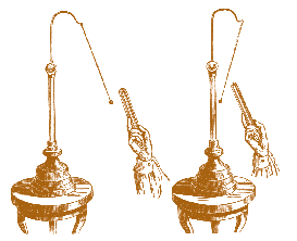 Опубліковані досліди Грея викликали інтерес у французького фізика Шарля Франсуа Дюфе (1698–1739) і спонукали його взятися за експерименти в галузі вивчення електрики. Досліди з першим електричним маятником, тобто з дерев'яною кулькою, підвішеною на тонкій шовковій нитці (мал. 5.2), які були проведені близько 1730 р., показали, що така кулька притягається натертою паличкою сургучу. Але лише варто торкнутися її, як кулька негайно відштовхується від сургучевої палички, начебто уникаючи її. Якщо тепер піднести до кульки скляну трубку, потерту об амальгамовану шкіру, то кулька буде притягатися до скляної трубки й відштовхуватися від сургучевої палички. Це розходження, вперше відзначене Шарлем Дюфе, привело його до відкриття, що наелектризовані тіла притягають ненаелектризовані, й як тільки останні за допомогою дотику наелектризуються, вони починають відштовхуватися одне від одного. Він встановлює наявність двох протилежних родів електрики, які називає скляною і смоляною електрикою. Ще він зауважує, що перша виявляється на склі, дорогоцінних каменях, волоссях, вовні й т.д., у той час як друга виникає на бурштині, смолі, шовку і т.д. Подальші дослідження показали, що всі тіла електризуються або як скло, потерте об шкіру, або як смола, потерта об хутро. Отже, є два види електричних зарядів, причому однорідні заряди відштовхуються один від одного, а різнорідні притягуються. Сили взаємодії електричних зарядів, які проявляються в притяганні або відштовхуванні, називаються електричними. Тобто електричні сили створюються електричними зарядами і діють на заряджені тіла або частинки.