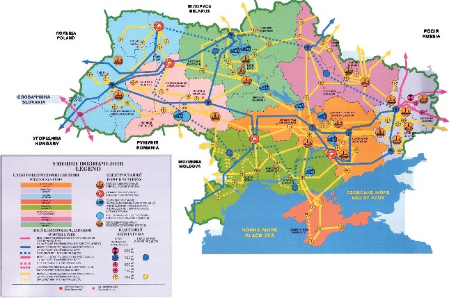 Мал. 3.5. Основні електростанції та електромережі ОЕС України